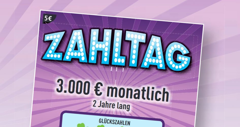Ein zweiter Zahltag im Monat mit 3.000 Euro netto? Klingt nach einem wunderbaren Traum. Das neue Rubbellos “Zahltag” von Saartoto kann diesen Traum Realität werden lassen – für zwei Jahre, und wenn man den Hauptgewinn dieses spannenden Rubbelloses knackt.